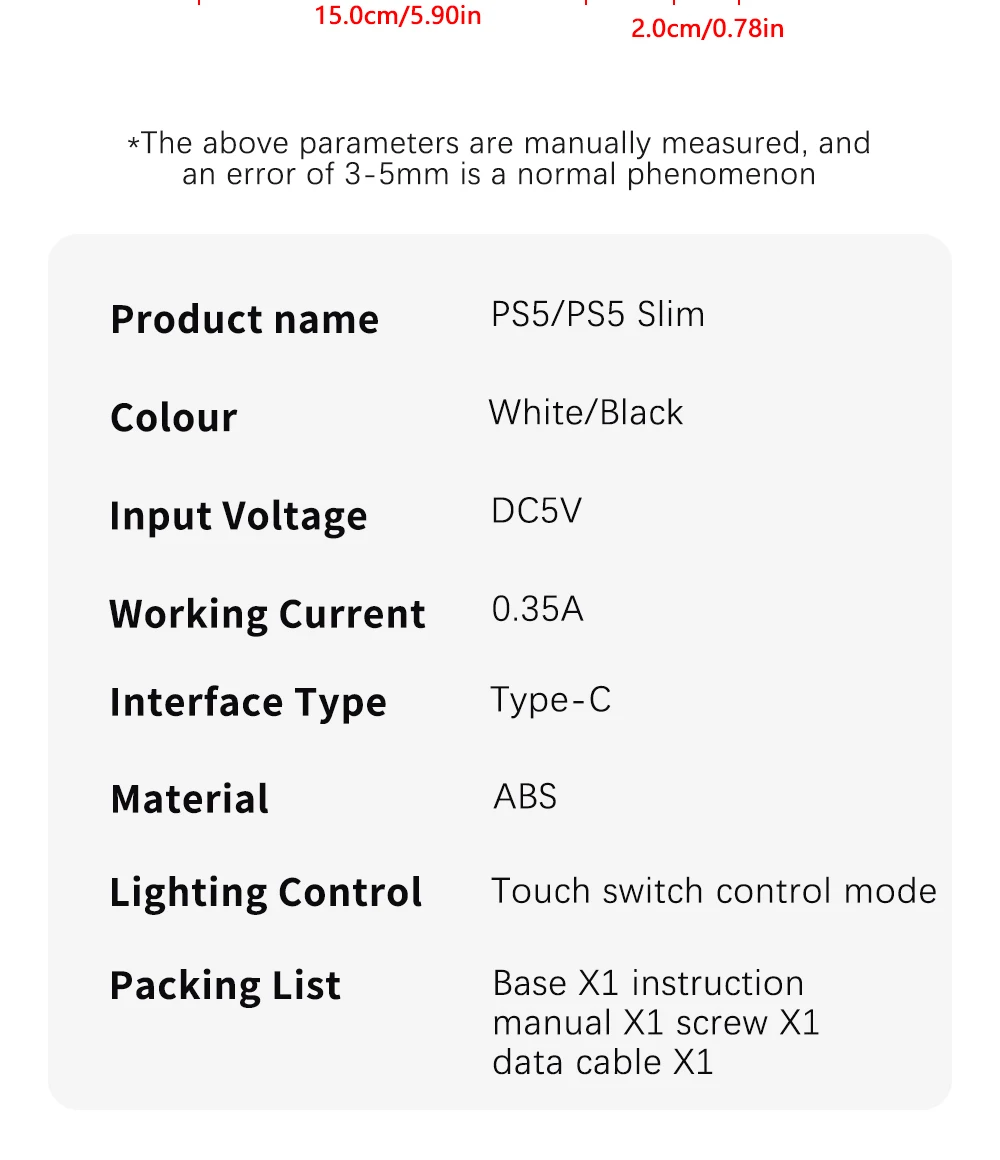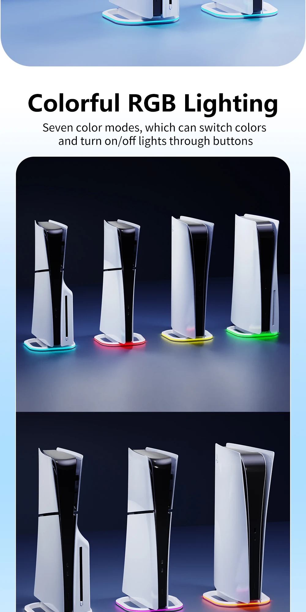 7 RGB Light: PS5 station has 7 types of RGB lights, equipped with a touch switch to control RGB lights, short press the RGB touch button to easily switch between 7 RGB colors, long press the RGB touch button for 3s to turn on/ off the light. The Playstation 5 stand remember the previous lighting mode after restarting
