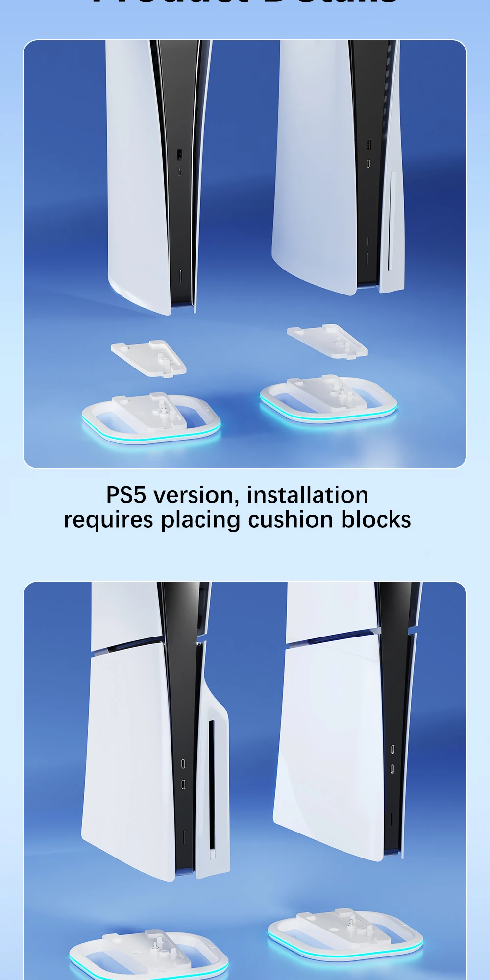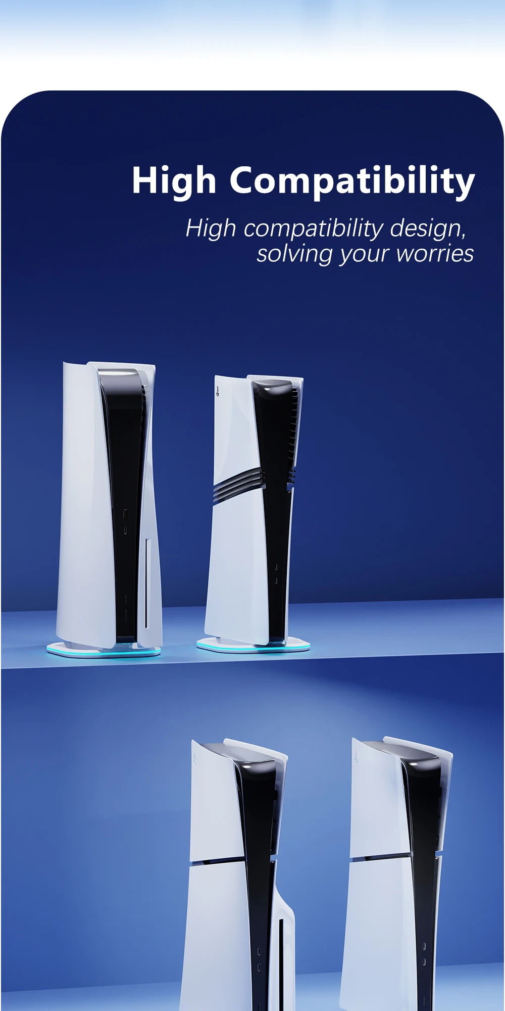 Compatible Consoles: HONCAM vertical Stand is suitable for PS 5 Digital and PS5 Disc console edition, as well as PS5 Slim/PS5 Pro Digital and PS5 Slim Disc console. The PS5 accessories with an extra insert for the PS5 console; for the PS5 slim/pro console, you just need remove the insert to use it