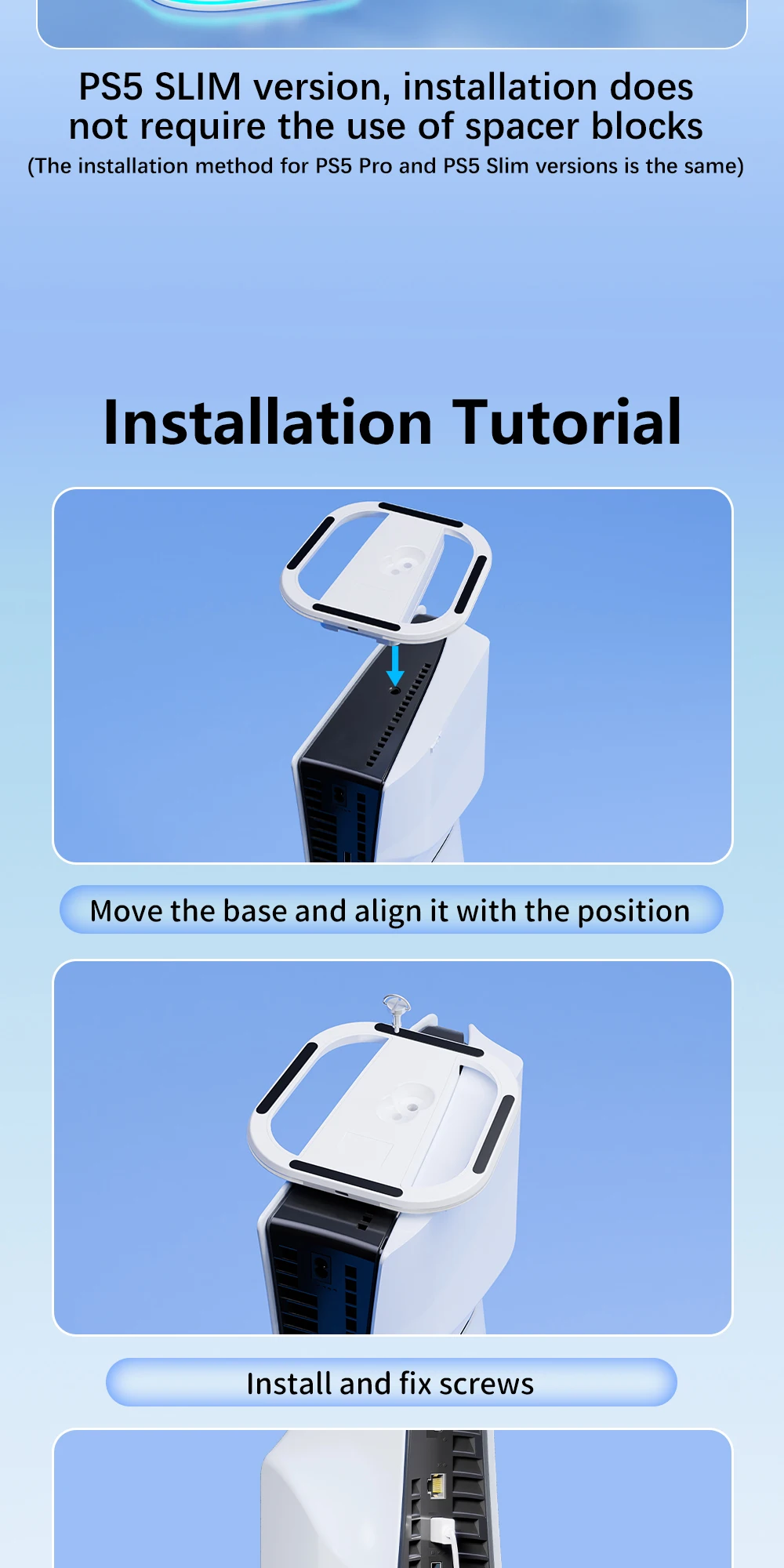 Easy to Install: Just turn your console upside down, and tighten the screw without any complicated tools. Make sure the console is securely in an upright position. And this vertical stand is designed with a round hole that can store PS5 console screw cap