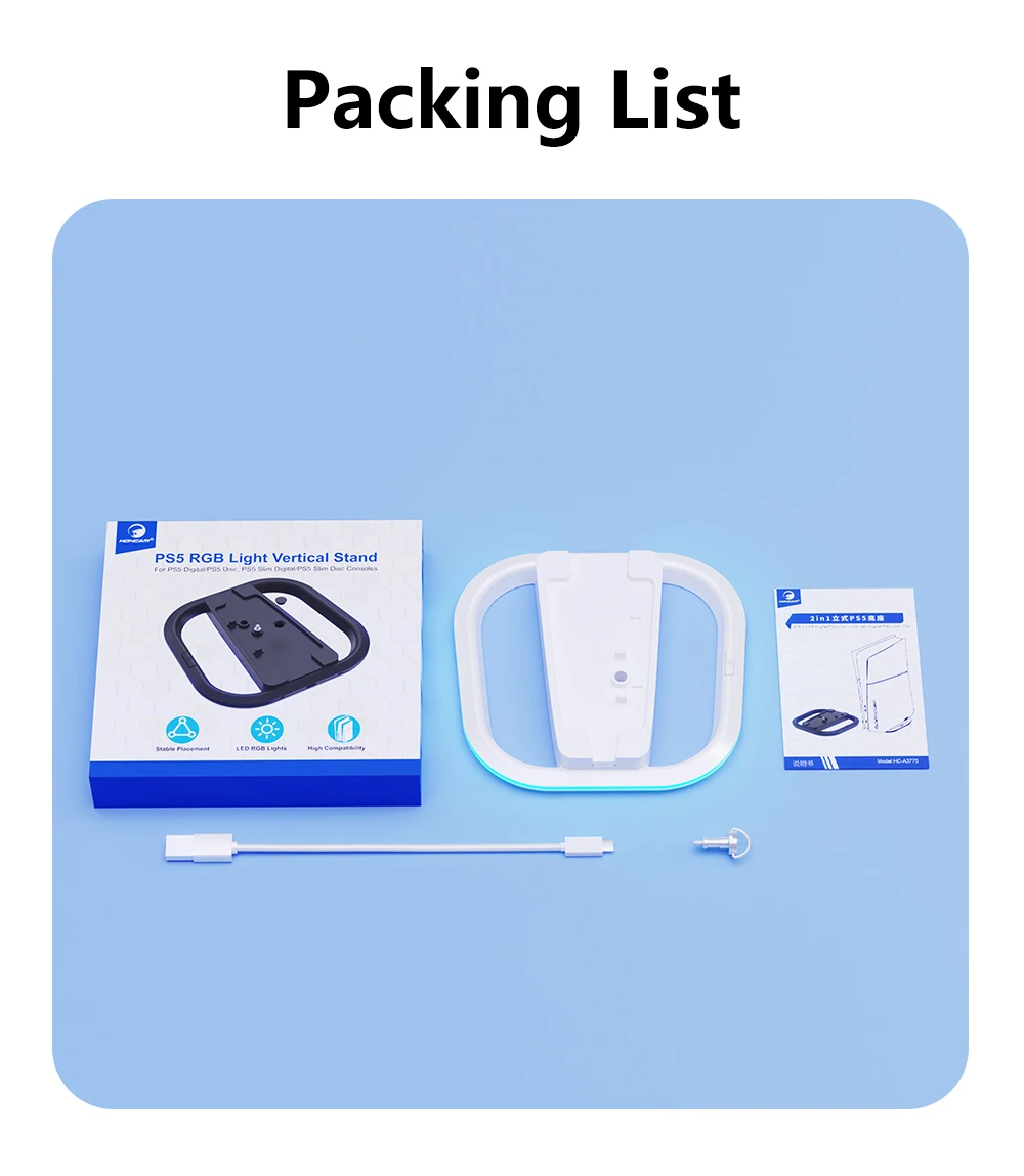 What You Get: Package Incl. 1 Playstation 5 console holder,1 screw, 1 USB type-c cord and 1 user manual.Any questions you meet, you can reach out to us at any time and we will respond within 12 hours